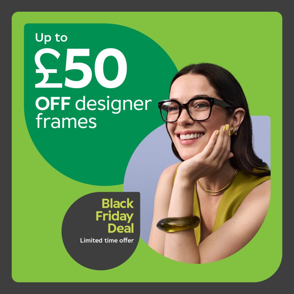 £50 off Designer Frames: For a limited time, you can get up to £50 off a pair of designer frames. Find Specsavers Woking and ask in store for full terms and conditions. Offer ends 7 December 2025.