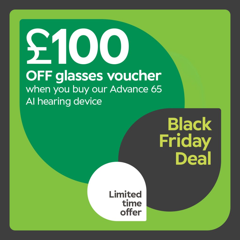 £100 off glasses voucher: For a limited time, you’ll get a voucher for £100 off glasses when you buy the Specsavers Advance 65 AI-powered hearing device. Find Specsavers Woking . Ask in store for full terms and conditions. Offer ends 7 December 2025.